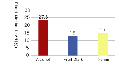 Both fruit stalk and Xylem reduced the Blood Alcohol Level to 1/2.